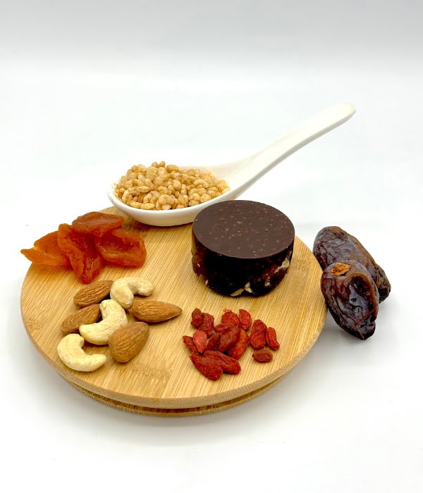 Savor the nourishing blend of dried apricots, chia seeds, almonds, and dates, each contributing to a medley of health benefits. Dried apricots offer fiber and essential vitamins, chia seeds provide omega-3 fatty acids and fiber, almonds offer protein and healthy fats, while dates offer natural sweetness along with fiber and essential minerals, creating a deliciously nutritious combination that supports overall well-being. *VEGAN AND GLUTEN FREE*